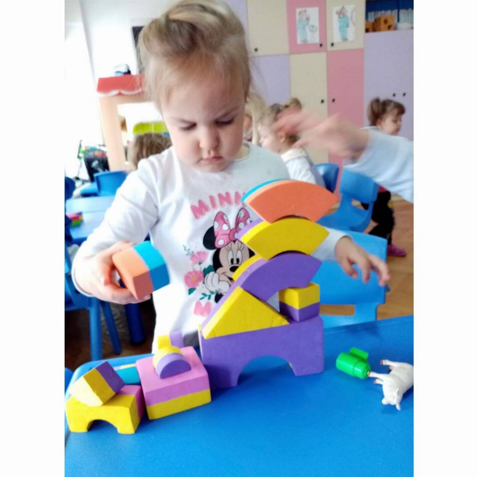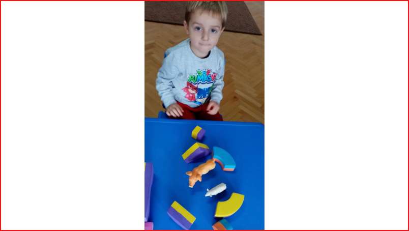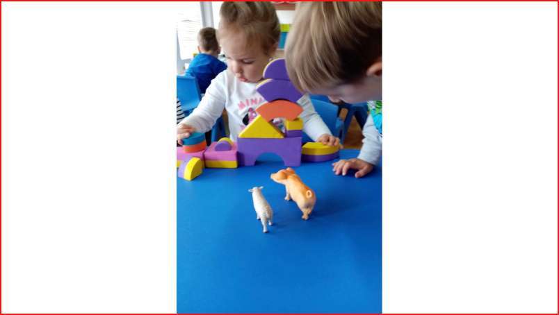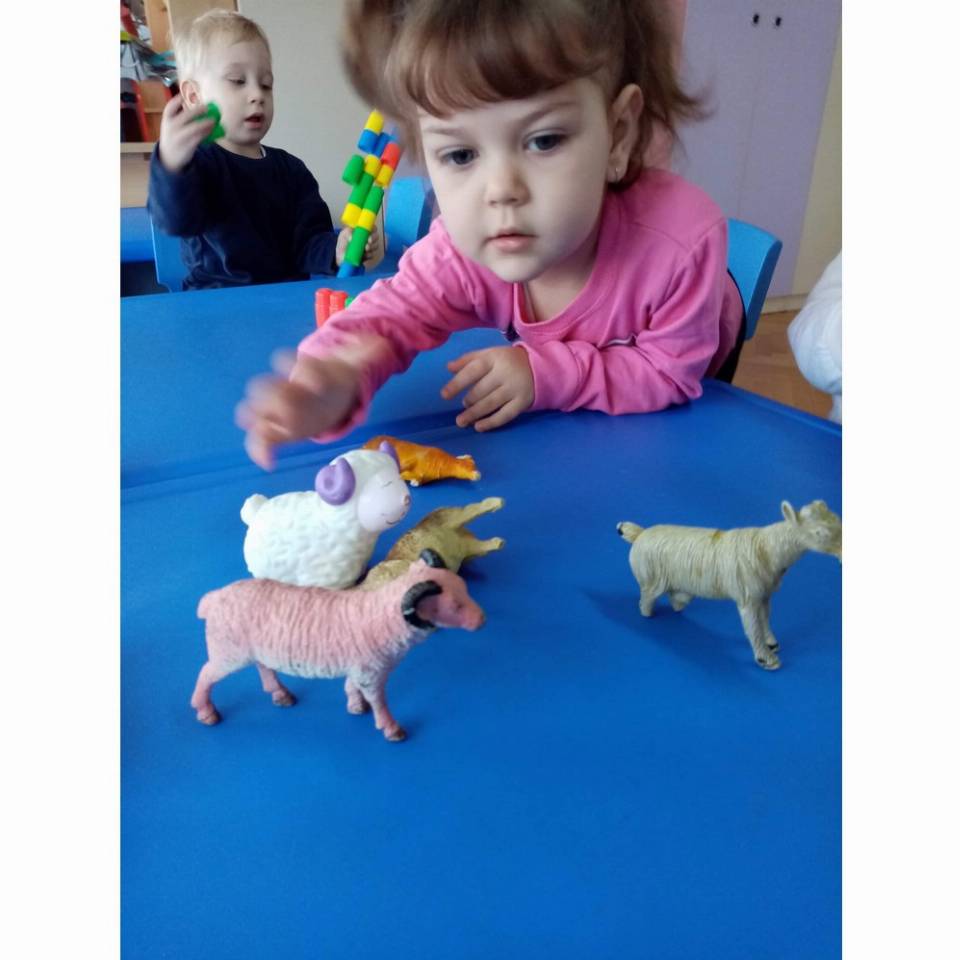 Цел: Да се запознава детето со домашните животни и нивните живеалишта, да се развива способноста на детето да ги растура и повторно да ги составува деловите од играчките.