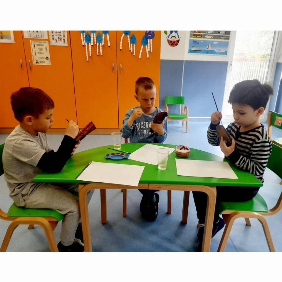 Целта на активноста ни беше да се оспособи детето за воочување на материјали од непосредната околина за ликовно изразување.
