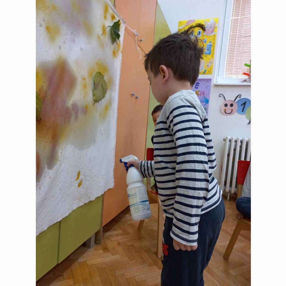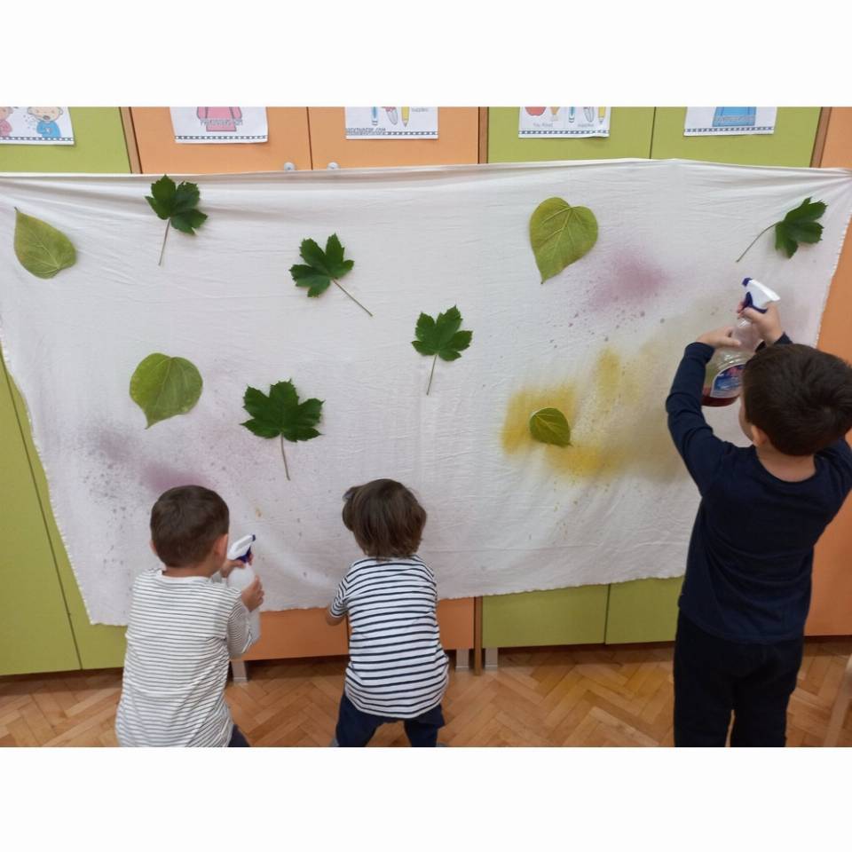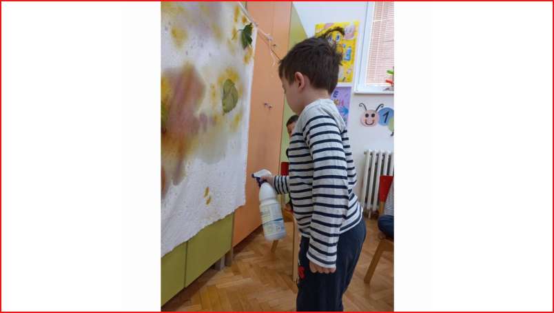 Цел на активноста: Да се оспособат децата за воочување и одбирање на материјали од непосредната околина за ликовно изразување.