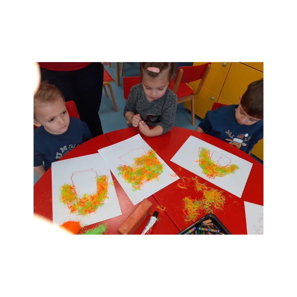 Цел - Да се запознаат децата со карактеристиките на годишното време зима и да се развива ситната моторика на дланките и прстите.