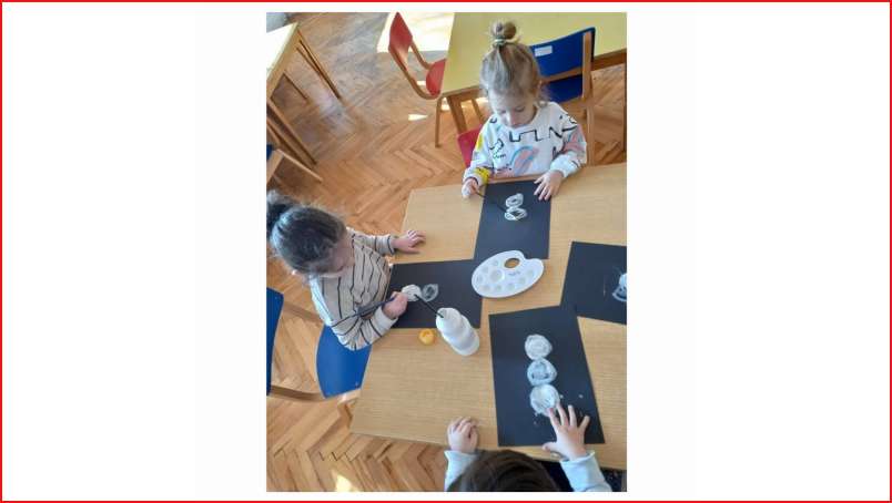 Цел: Да се поттикне интересот на детето кон запознавање и користење на различни ликовни и останати материјали (темперни бои, четки).