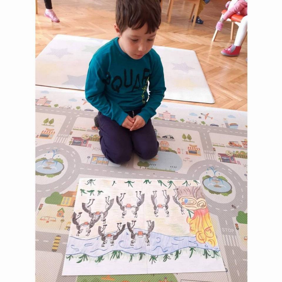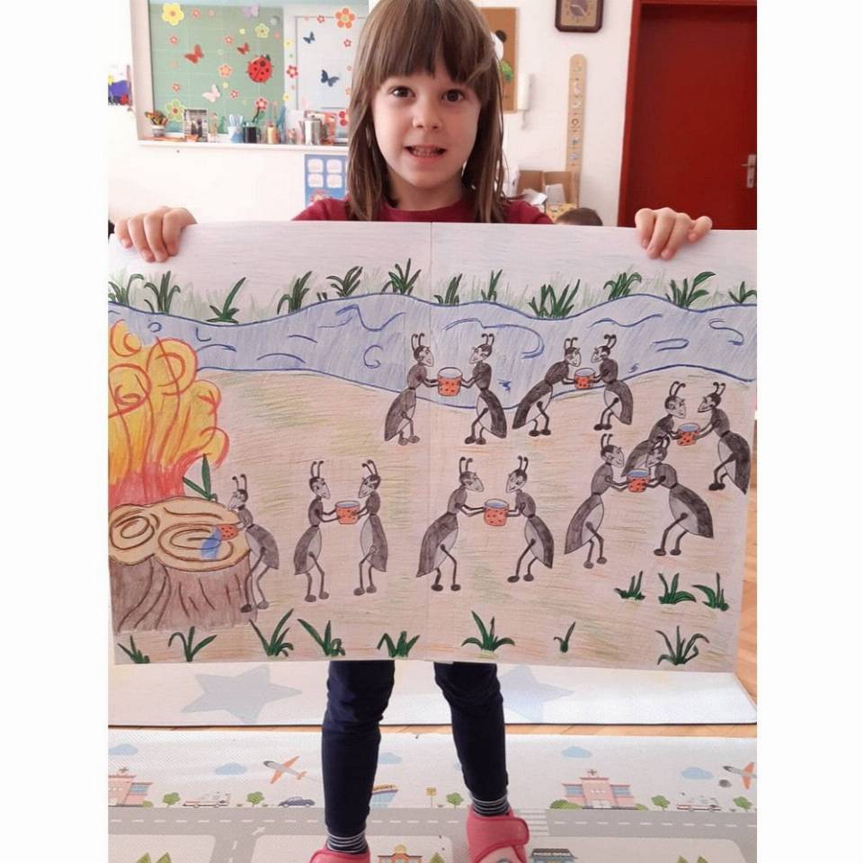 Цел: Да се поттикне љубопитност кон откривање нови сознанија за животинскиот свет, запознавање со нова содржина и способност за прераскажување на литературната творба и ликовно изразување со користење на различни материјали.