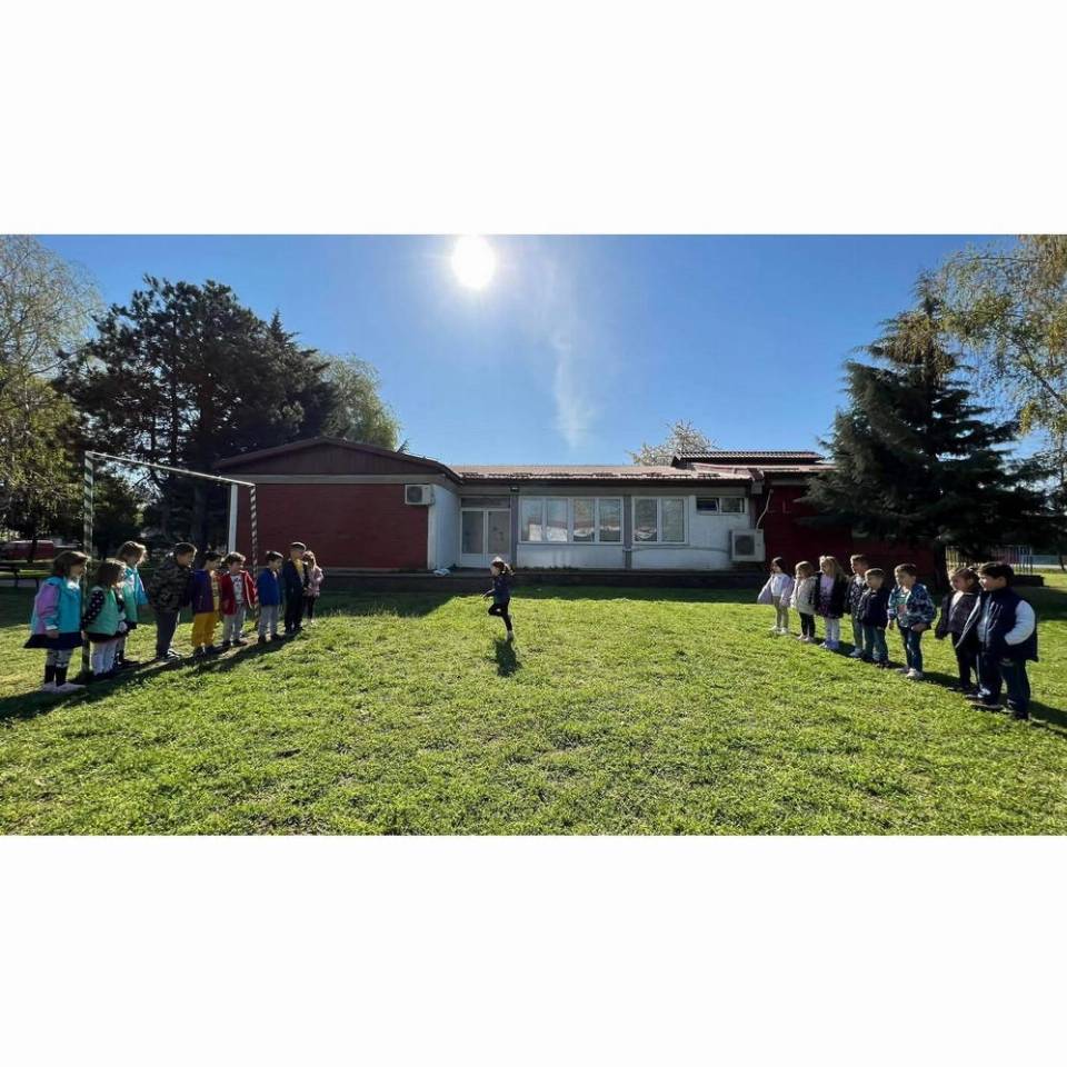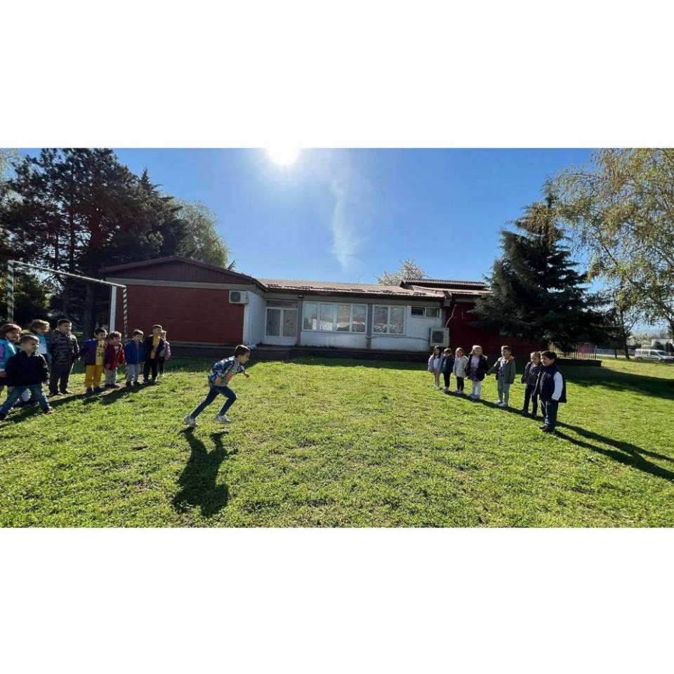 Цел: Да се усовршат основните природни движења: одење, трчање, скокање.