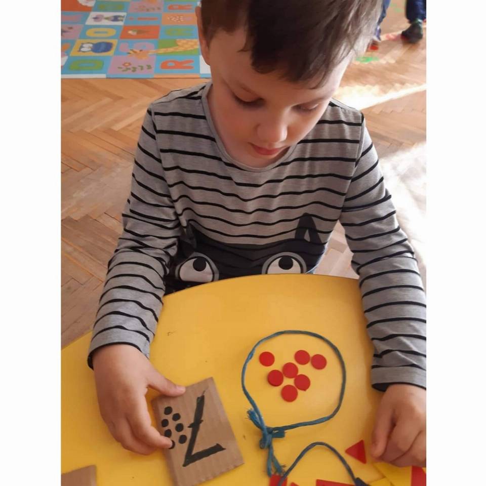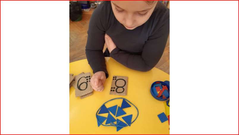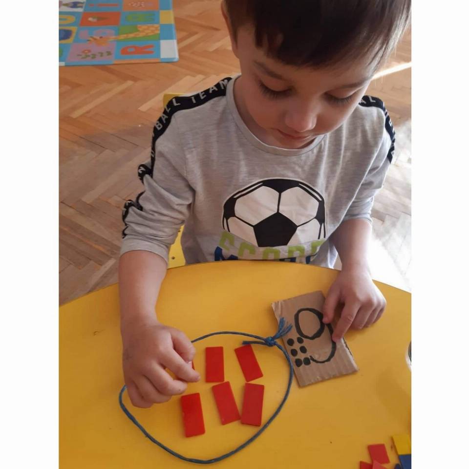 Цел: Да се поттикне способност за препознавање и именување на цифри, формирање множества, препознавање на форма боја и големина на математички плочки, поттикнување на графомоторичка активност кај децата.