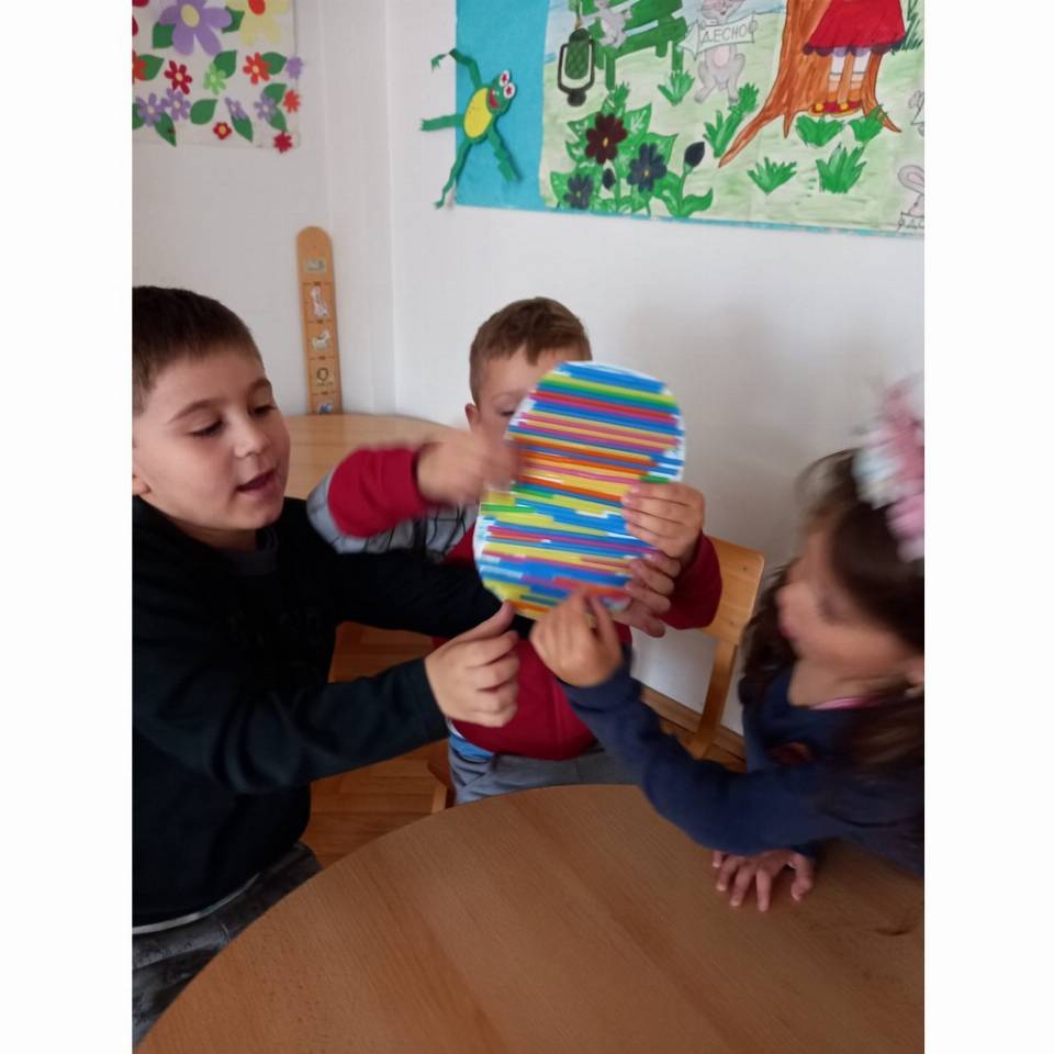 Цел - Запознаваме со традицијата и културата по повод празникот Велигден. Поттикнување креативност, развој на фината моротика на прстите.