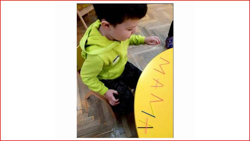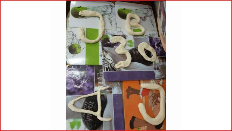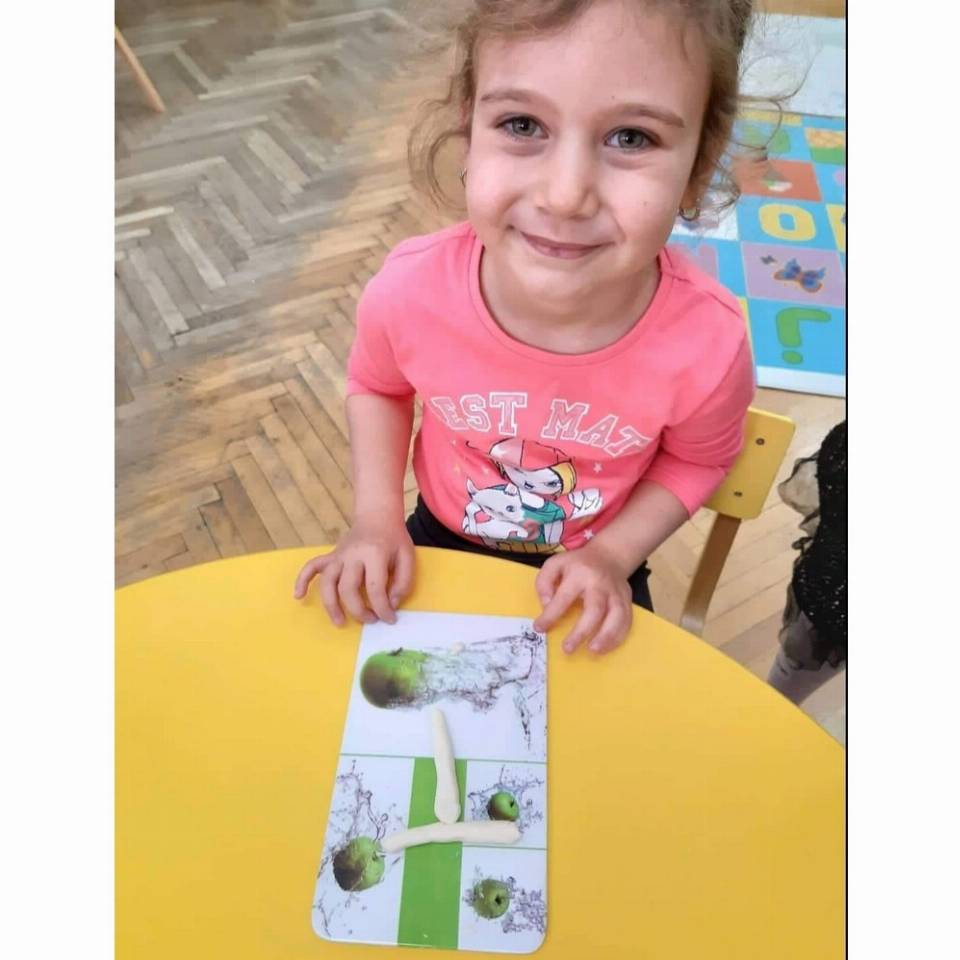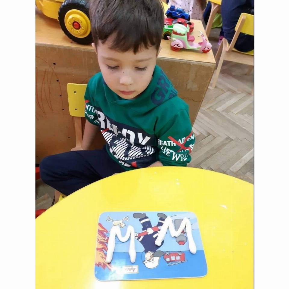 Цел - Да се поттикне способност за препознавање и именување на буквите на своето име и негување развој на фината моторика на раката преку пластично обликување со помош на солено тесто, развој на фокусирано набљудување и координација око-рака.