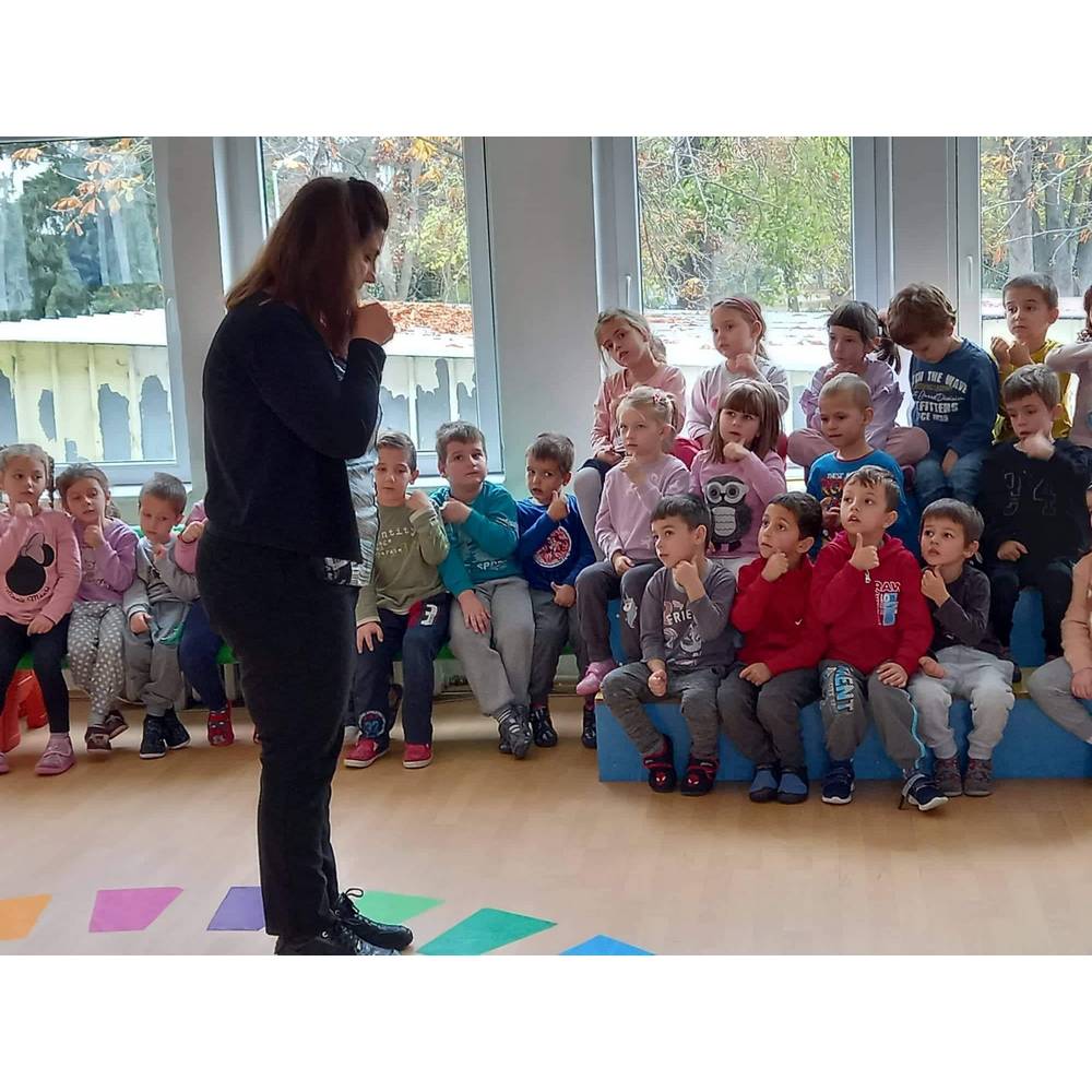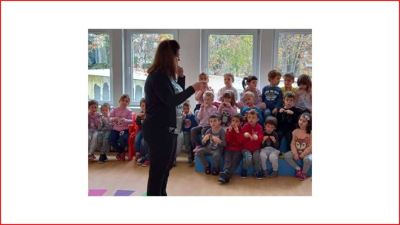 Цел - Запознавање со потребите на децата со оштетен слух како кохлеарен имплант, апаратче за слушање, учење на основните знаци на комуникација - Знаковен јазик.