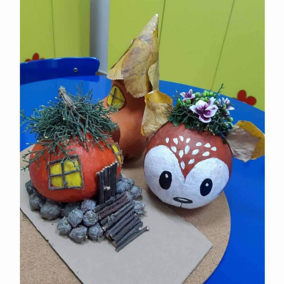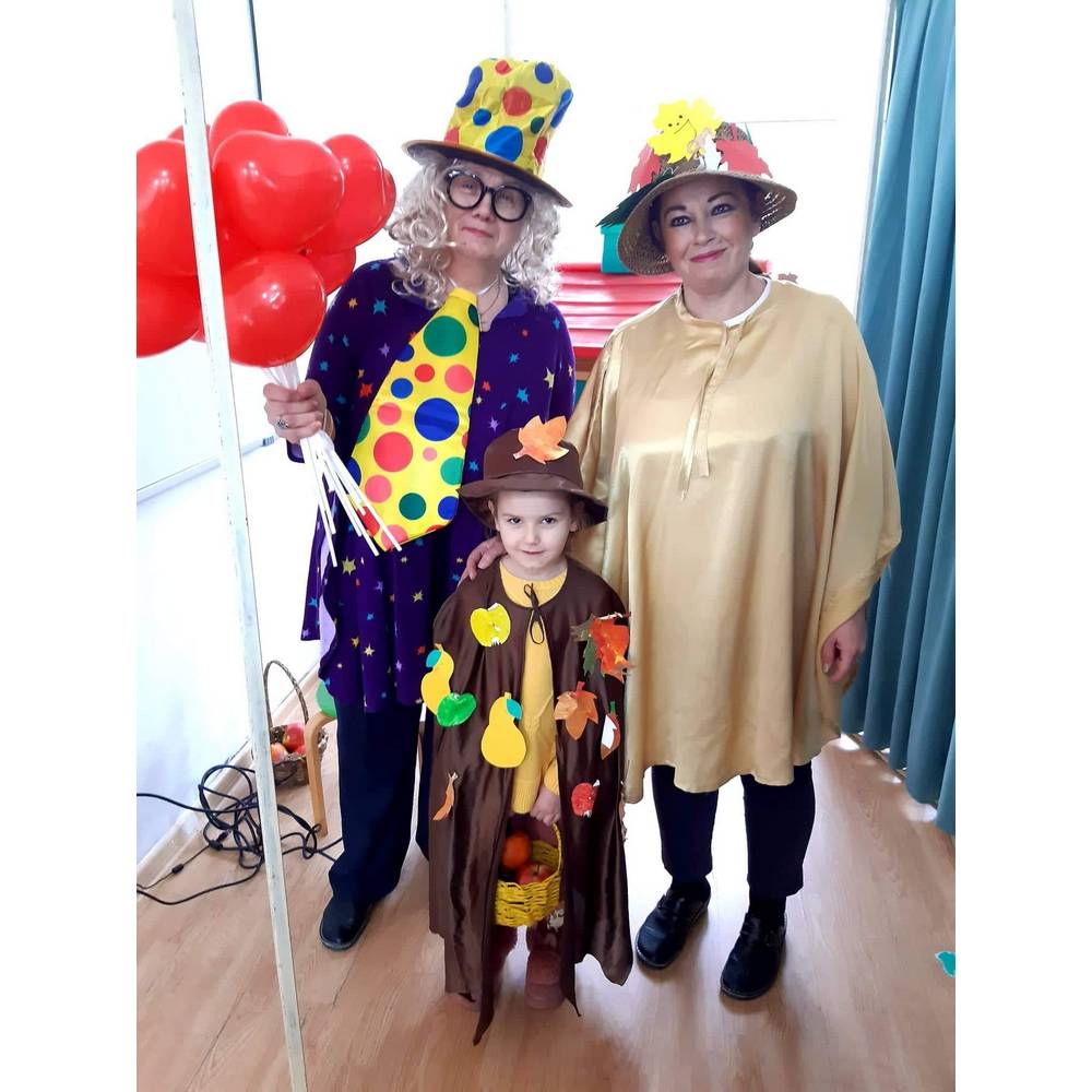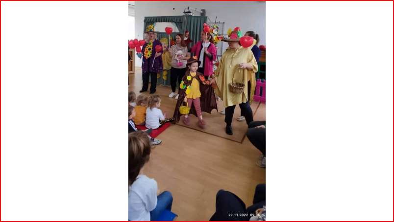 Цел - Да се поттикне способност емотивно доживување на претставата преку непосредна средба куклите гињоли, способност за доживување на спектарот на боите на есента преку изработки во соработка со семејствата - родителите и децата.