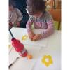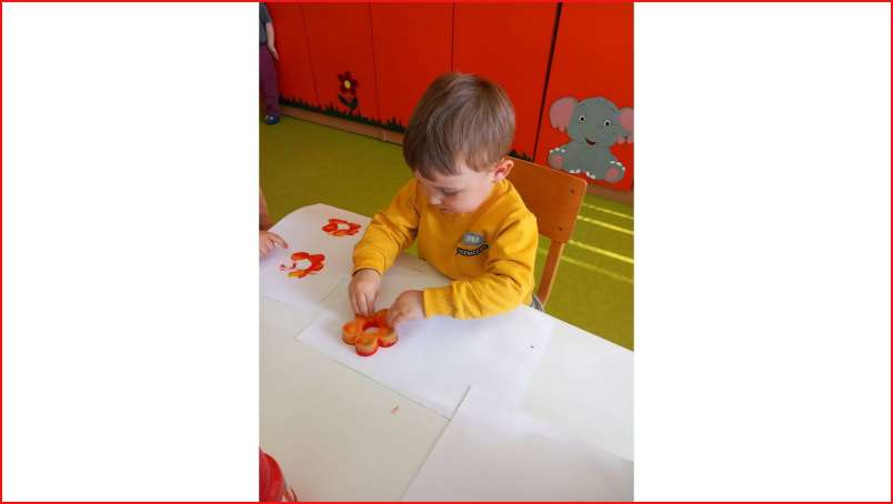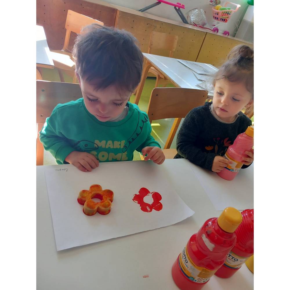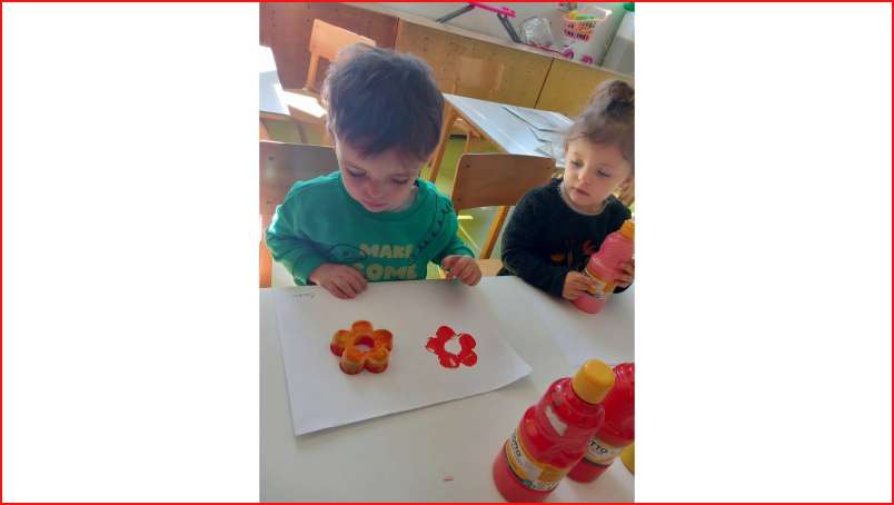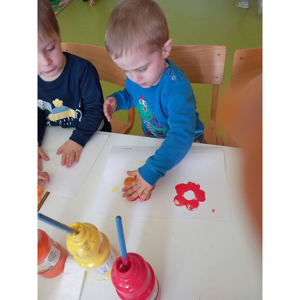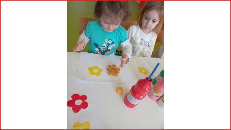 Цел: Да се поттикне интересот на детето кон цртањето со различен ликовен материјал (темперни бои и четки) и да се поттикнат способностите за разликување и именување на основните бои на цвеќињата.