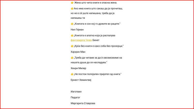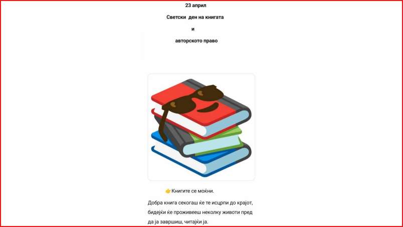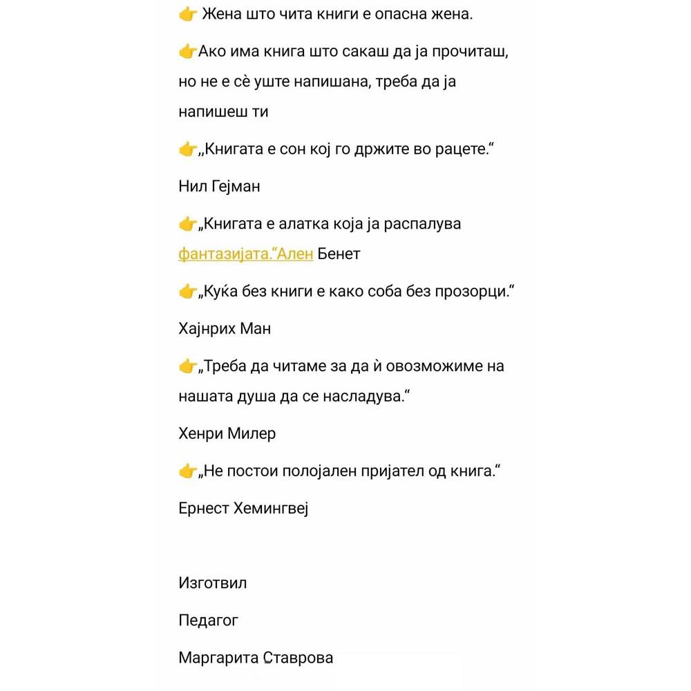 23 Април го чествуваме Светскиот ден на книгата и авторското право... Прочитајте по некој цитат за книгата и уживајте во читањето...