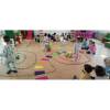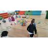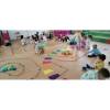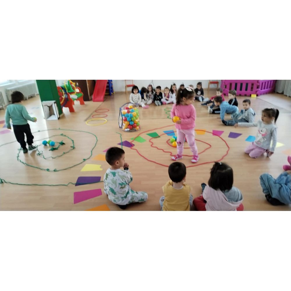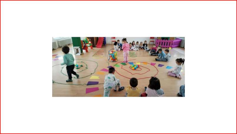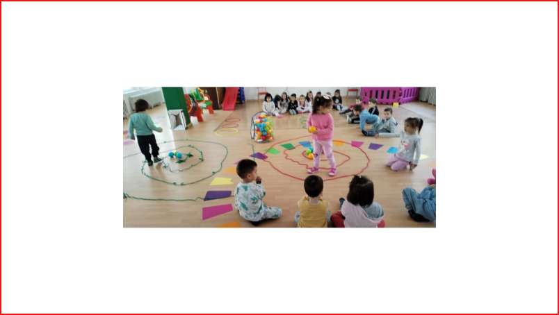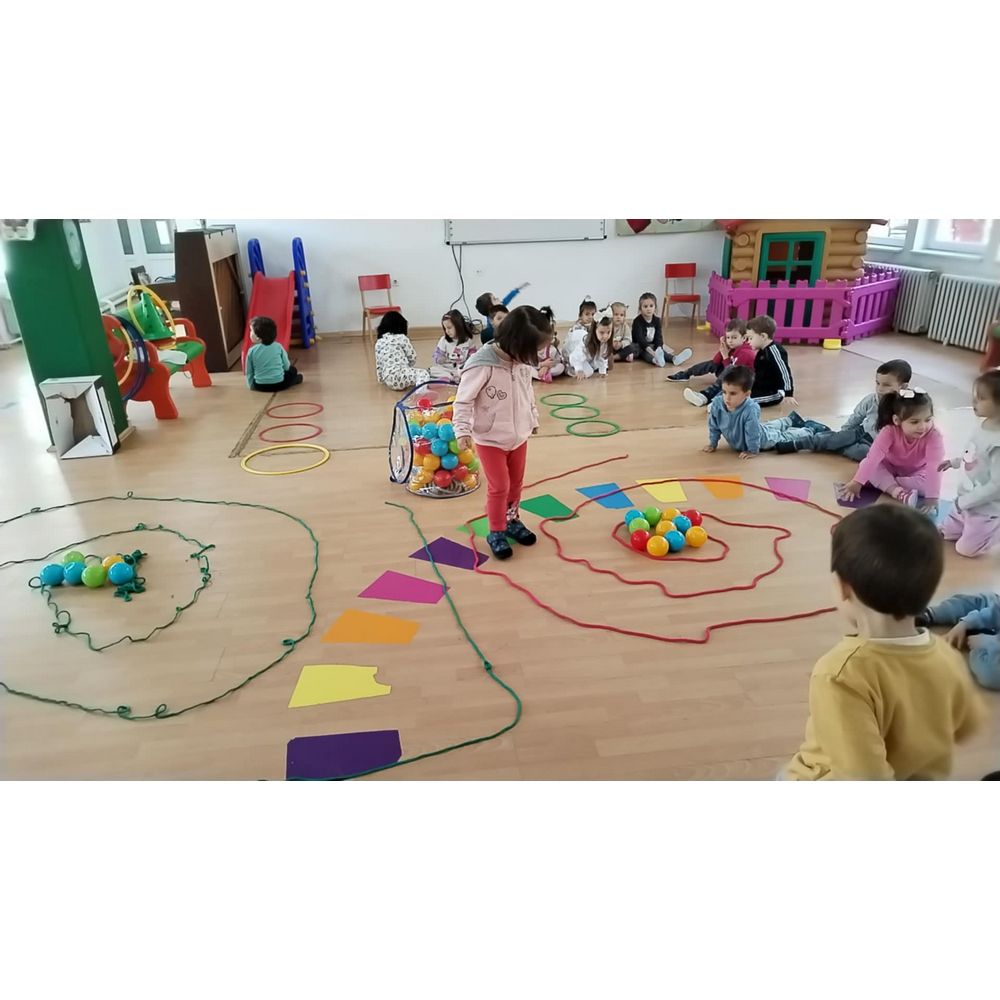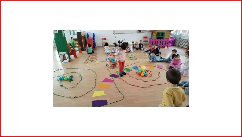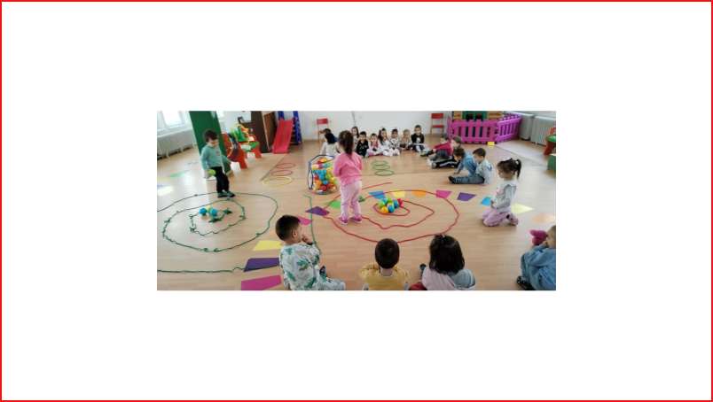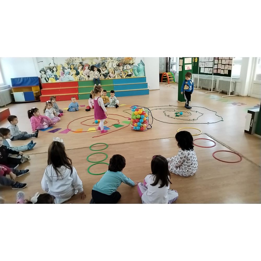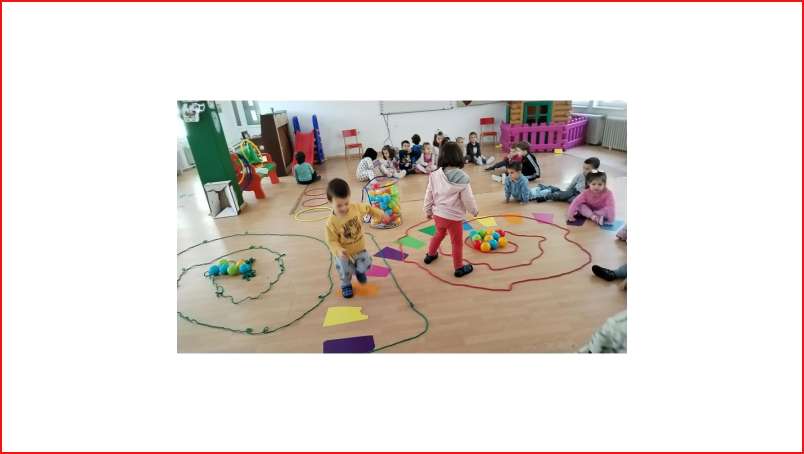 Цел - Да се поттикнат децата преку игра да ги совладаат основните движења (напред, назад, кружни) фокус и координација (рака - око) баланс, извршување на одредена задача пренос на топче со претходно сунижни пискоци.