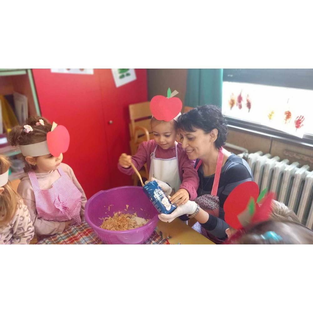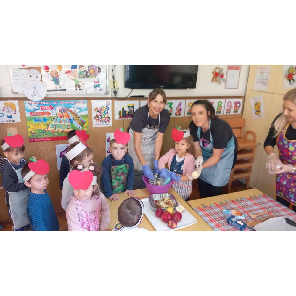 Одбележување на Денот на јаболкото со подготовка на "Штрудла со јаболки" и "Цеден сок од јаболки" во соработка со родители.