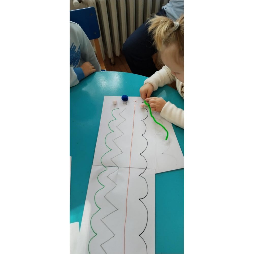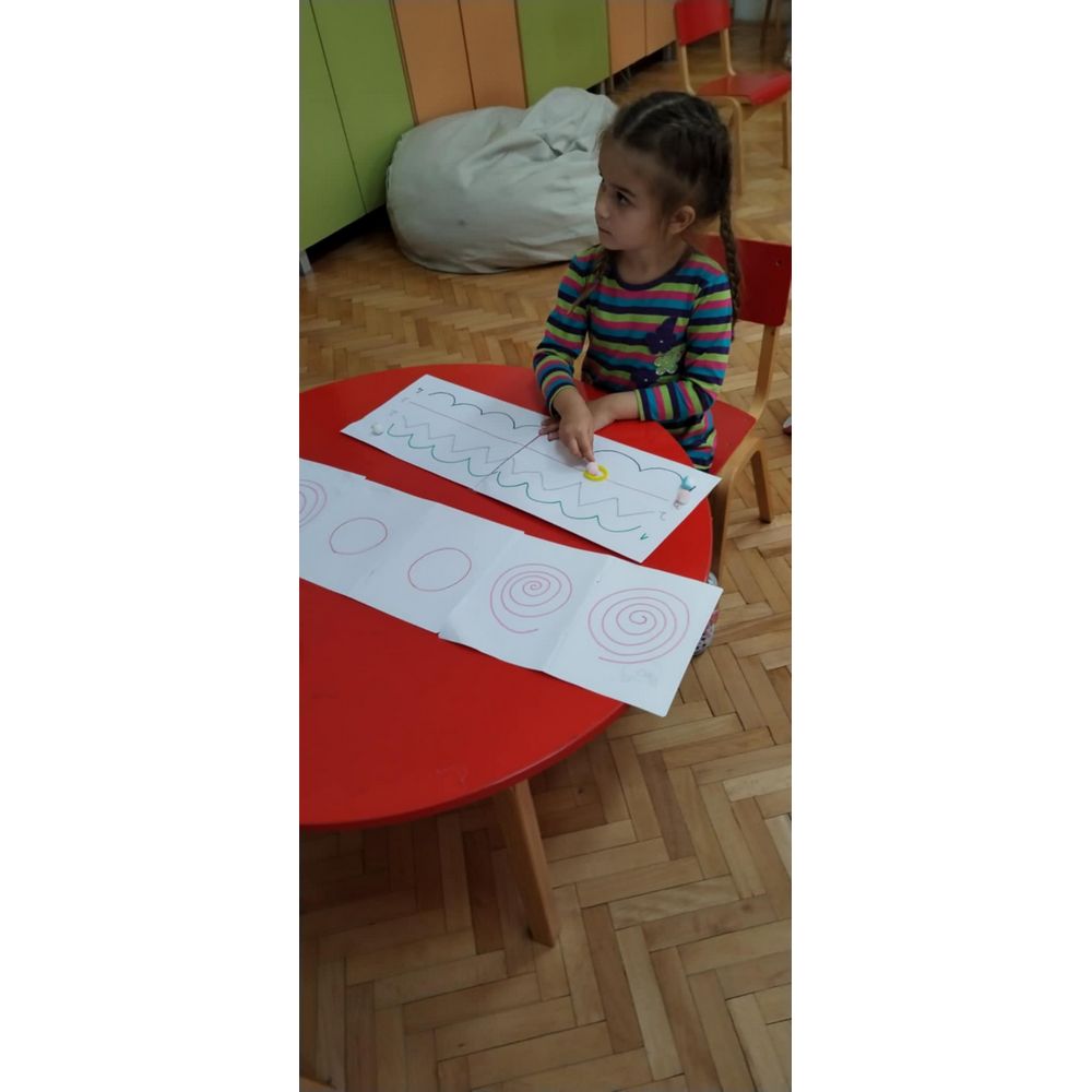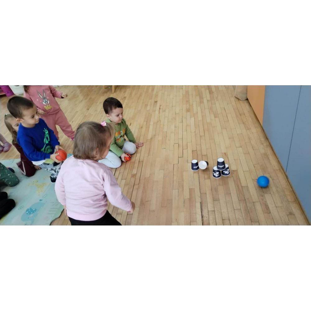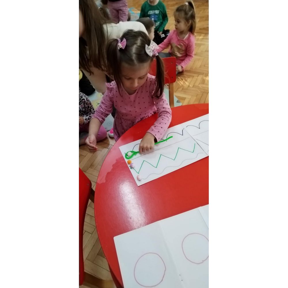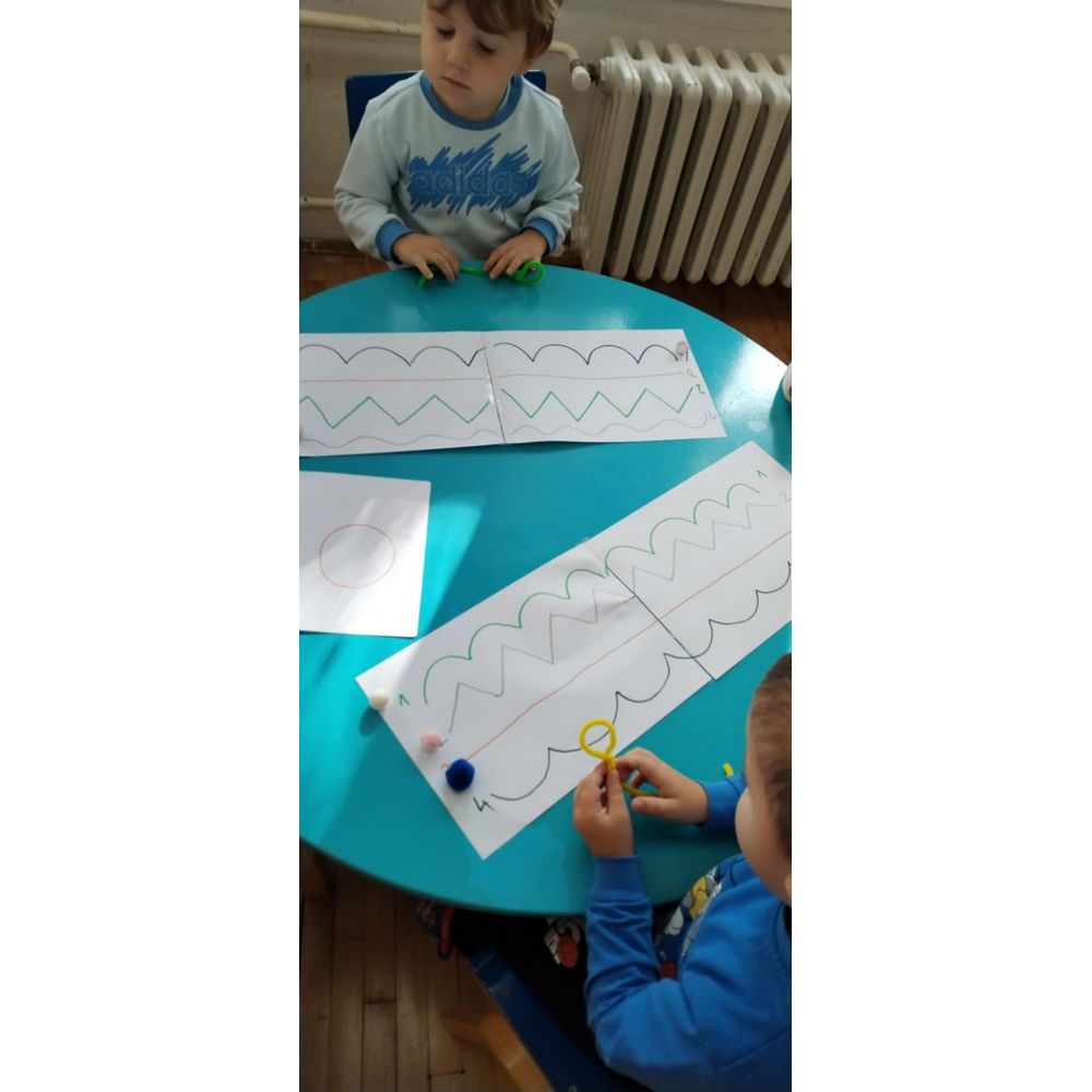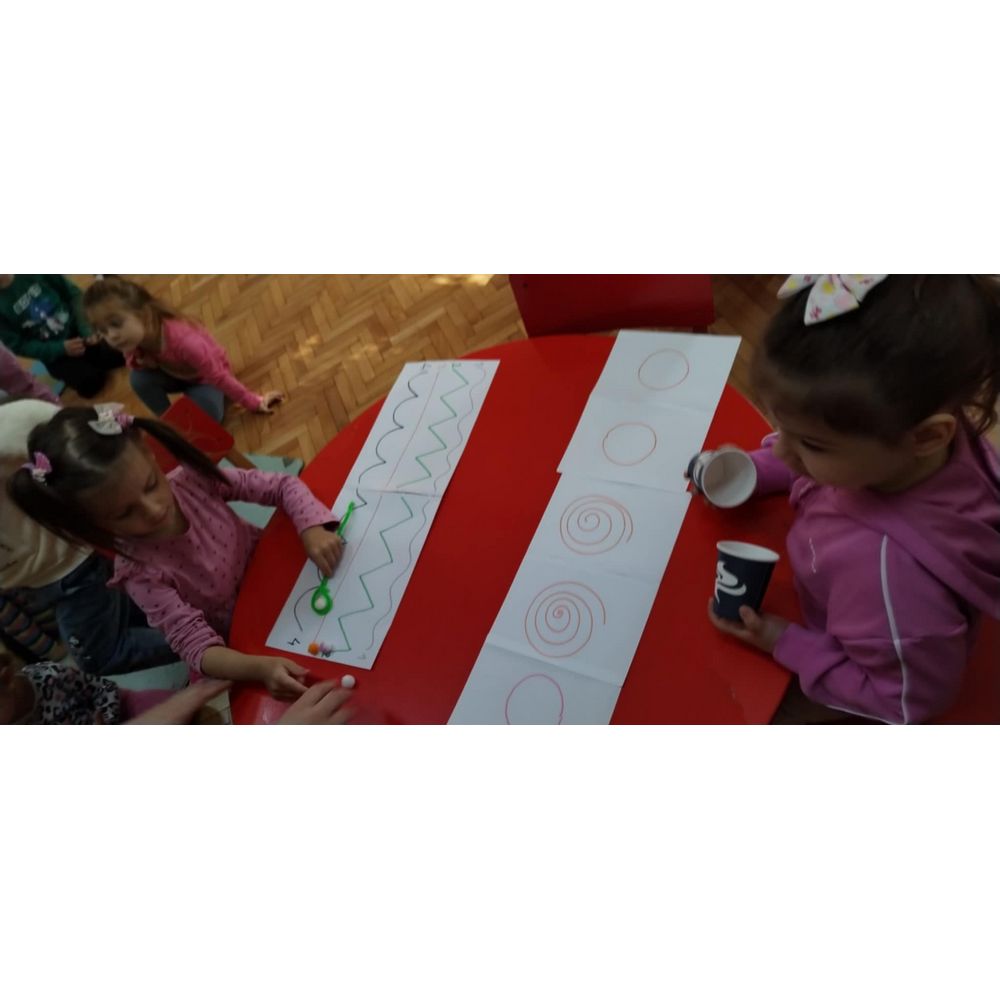 Цел - Подобрување на детската игра, вклучување на палец и показалец, како и цела рака (фаќање чашки, пренесување на мали топчиња по зададени нацртани линии со целни броеви, фаќање предмети, користење на двете раце за извршување на задачи и координирање на овие движења (рака - око). Со фината моторика се стекнува самодоверба, грижа за себе, едноставно ги подготвува децата на успех.