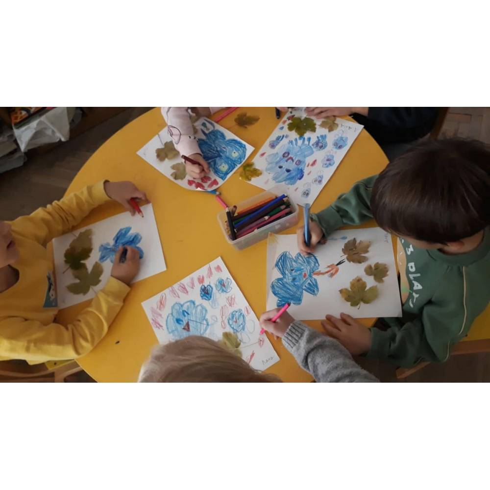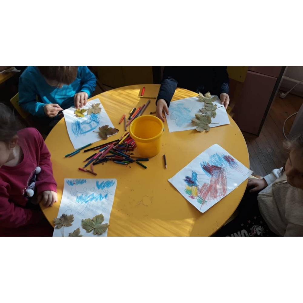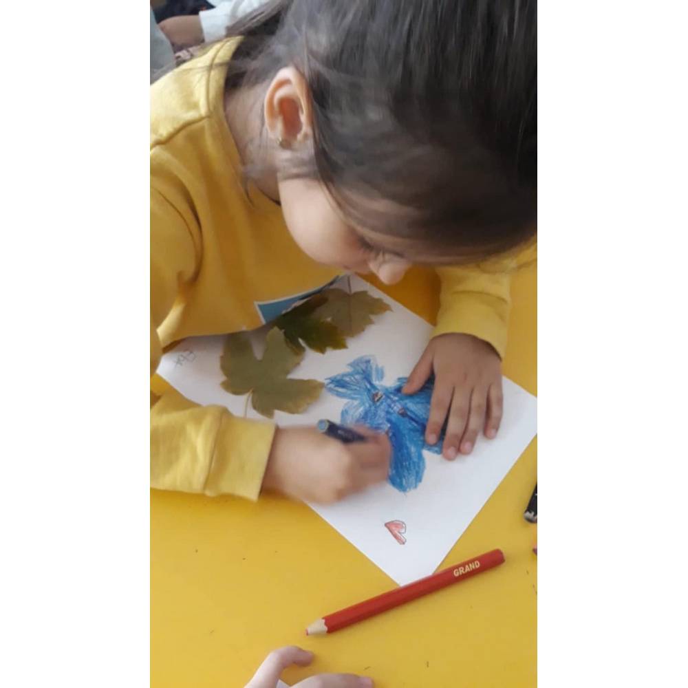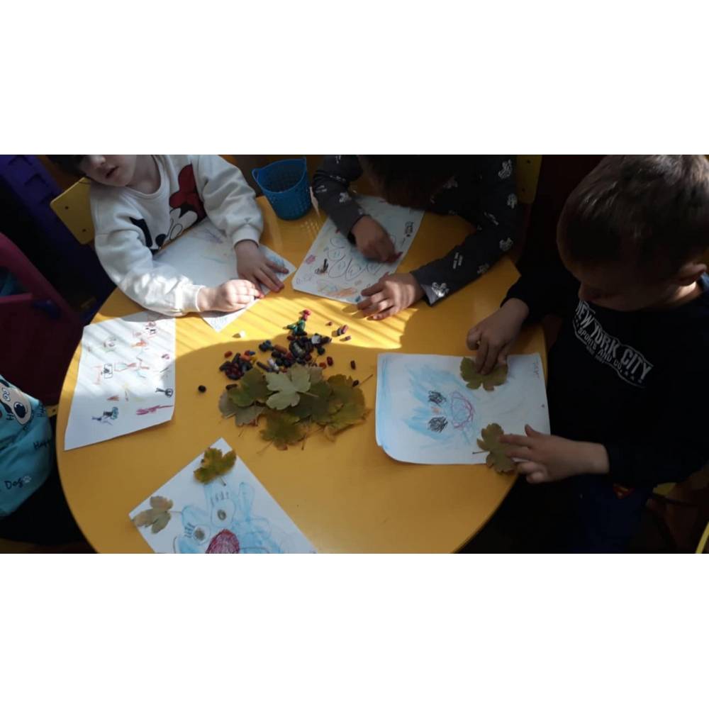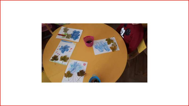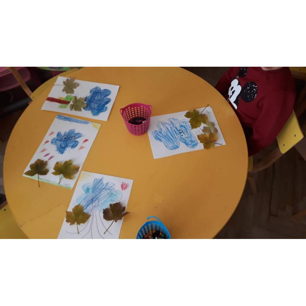 Цел - Да се поттикнува естетско доживување на есента и способност за истражување и користење на природен материјал и класификација на листови по големина.