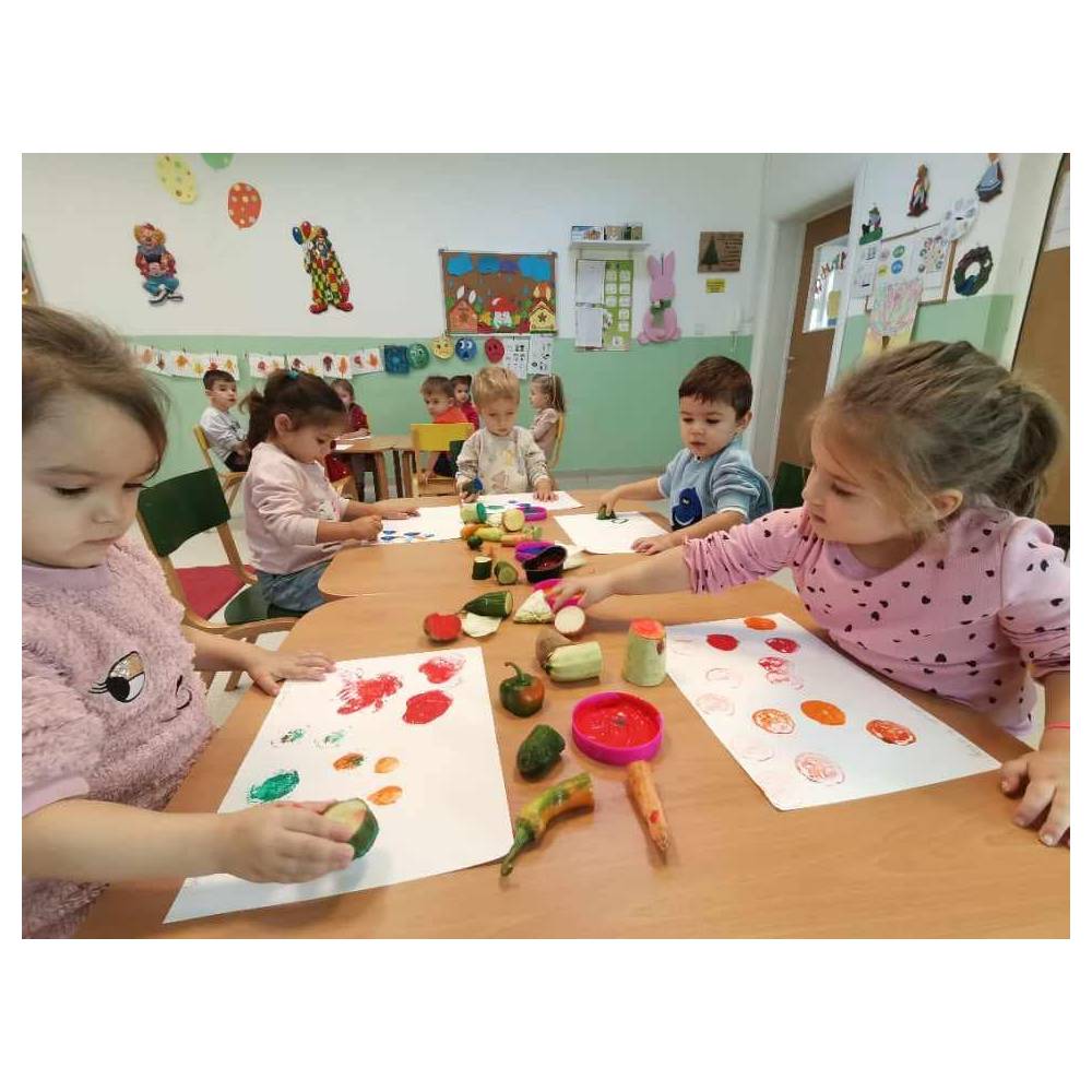 Цел - Да стекнат знаења за препознавање, именување и класификација на зеленчукот, како и способност за користење различни материјали, предмети, алатки и други достапни ресурси за ликовно изразување.