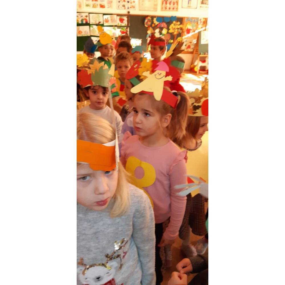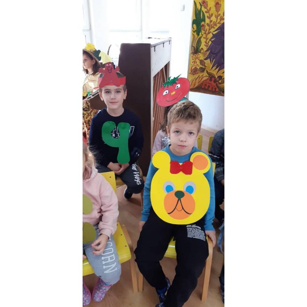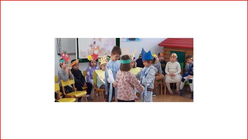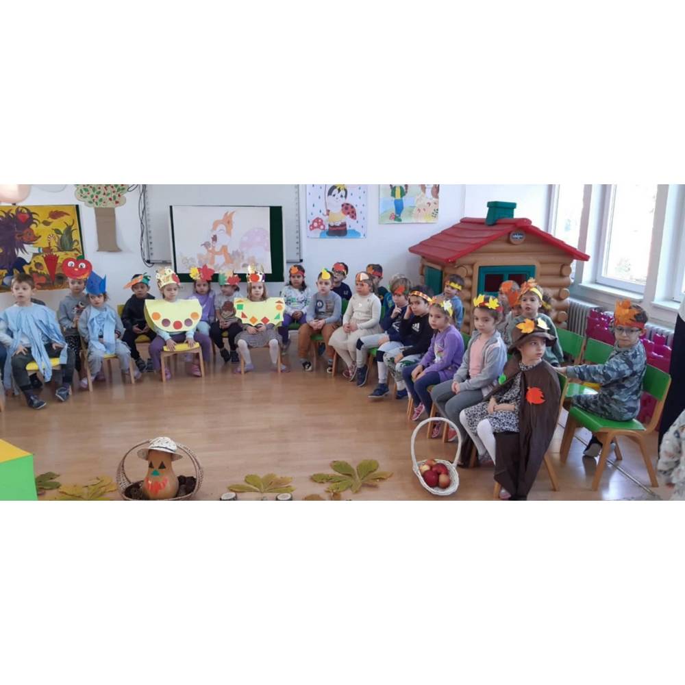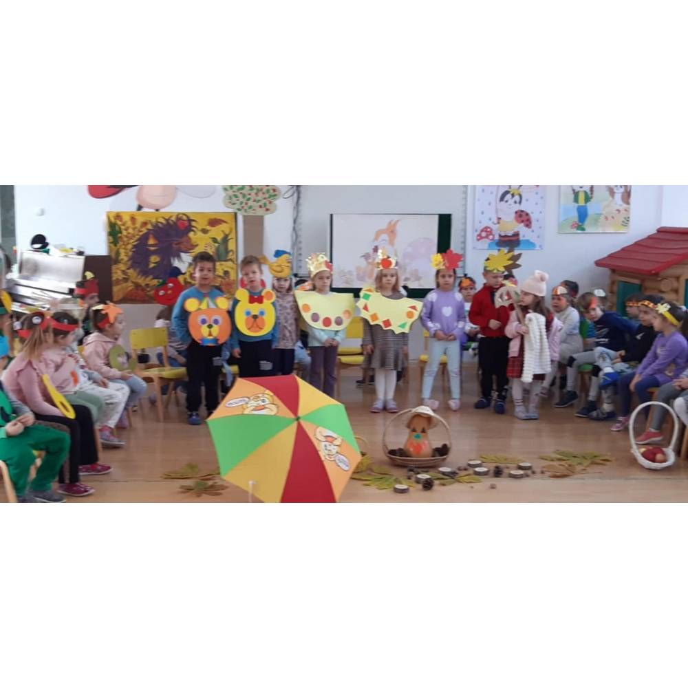 Цел - Да се поттикнат естетски чувства и позитивни доживувања кај децата од спектарот на бои на есента преку песни, стихови и драмска игра.