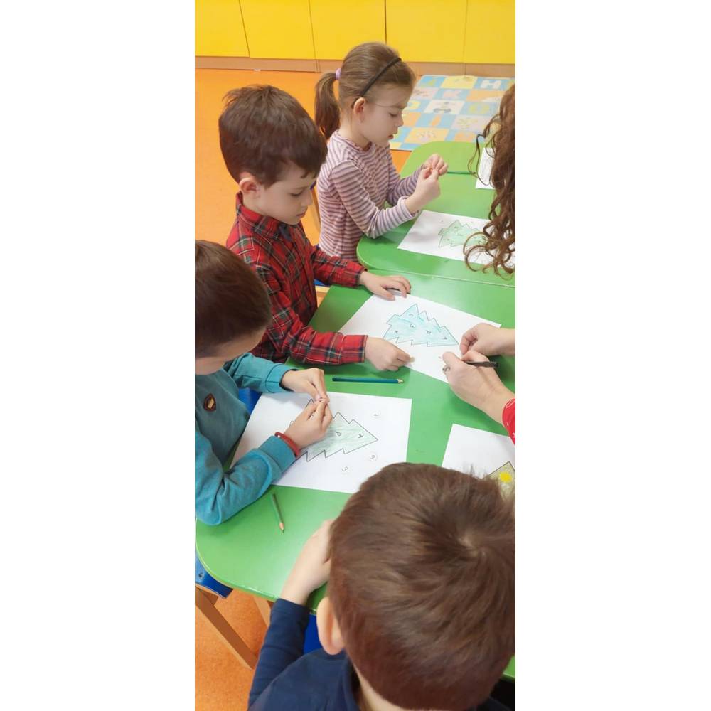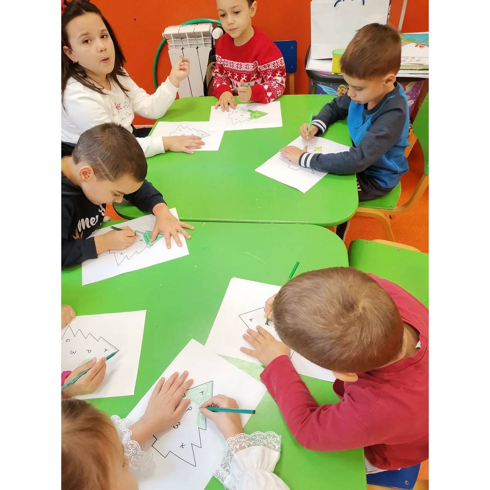 Цел - Развој на јазични вештини, поттикнување на препознавање и именување на буквите, зајакнување на фината моторика, поттикнување чувство на заедништво и радост.