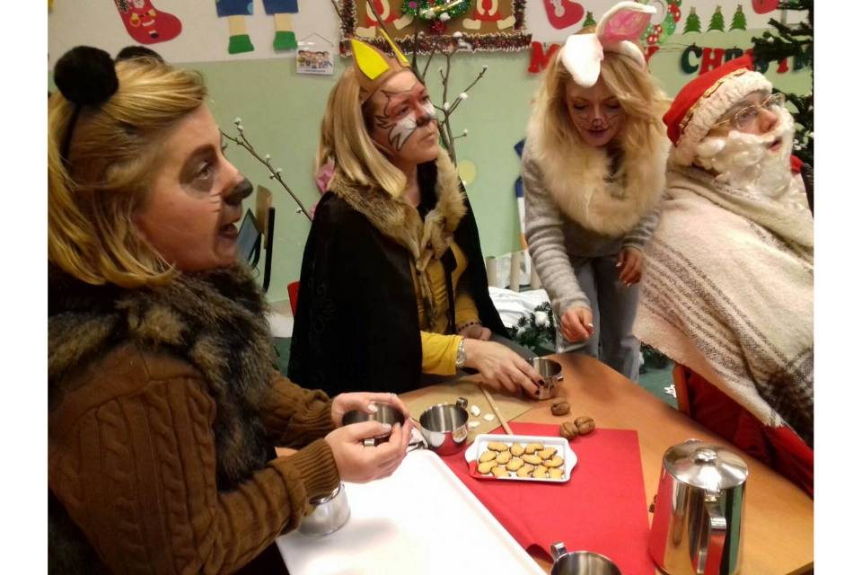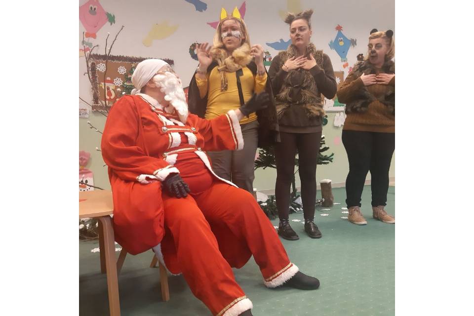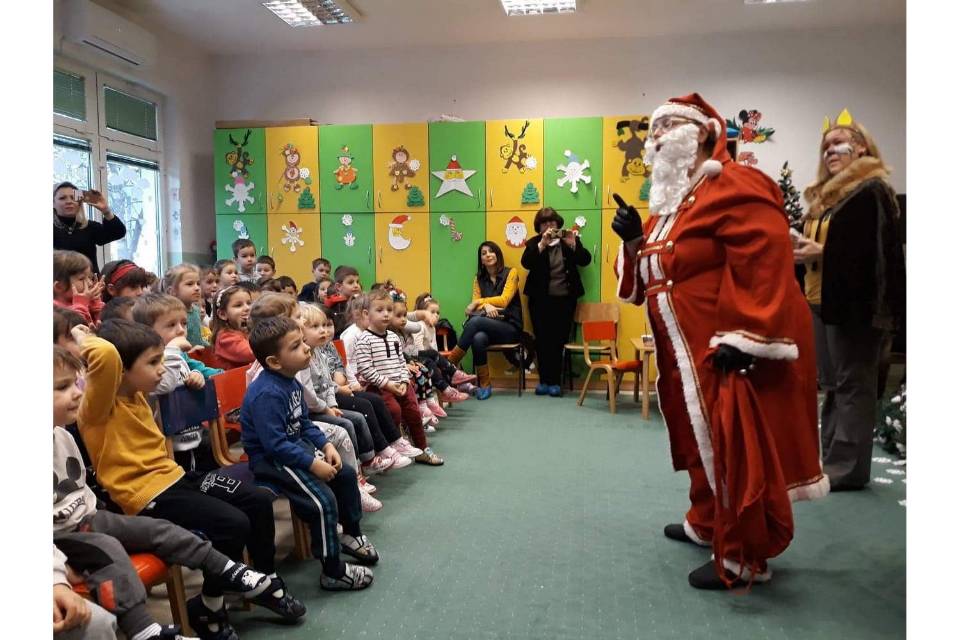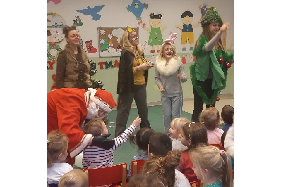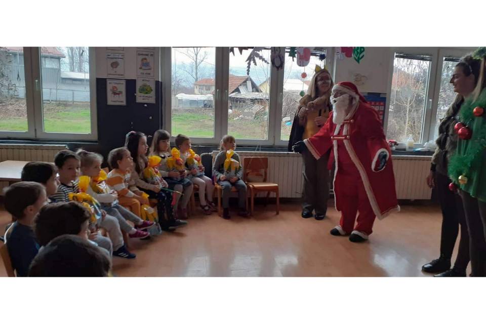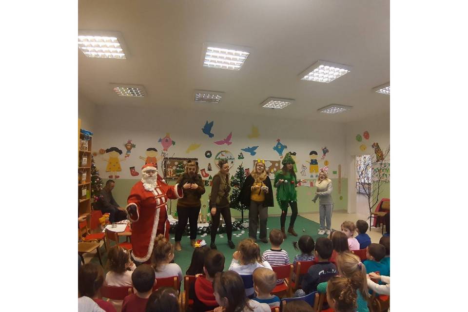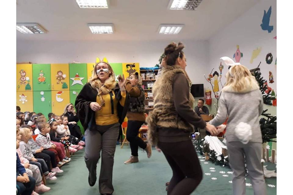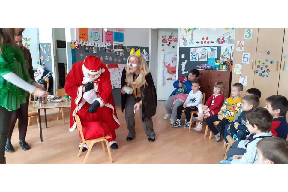 Дечињата уживаа во волшебната новогодишна атмосфера дружејќи се и пеејќи во еден глас со ликовите на Дедо Мраз, елката и нивните шумски пријателчиња: медо, зајко, верверичката и кума лиска.
