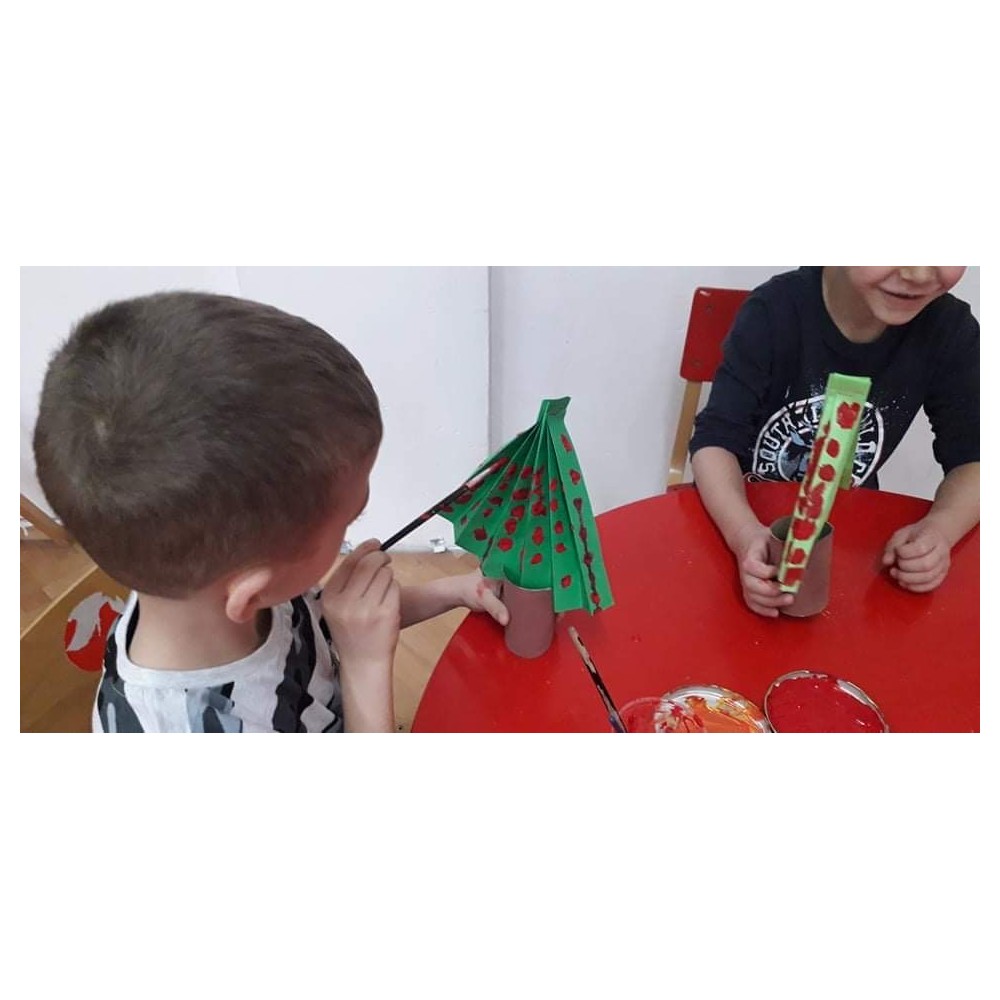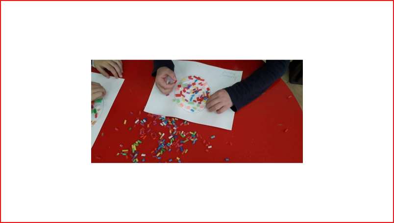 Цел - да се развива фината моторика кај детето при лепење и користење различен ликовен и неликовен материјал.