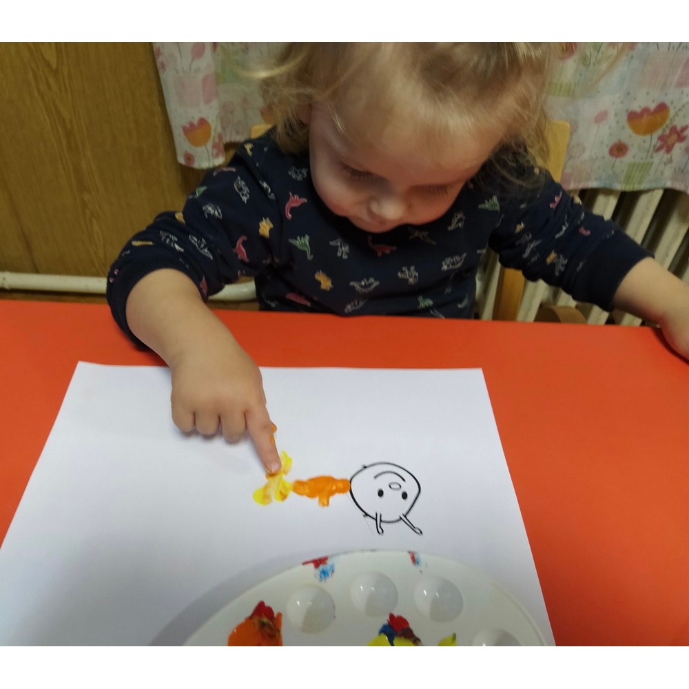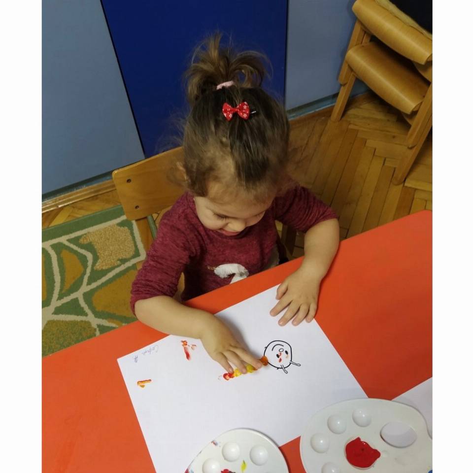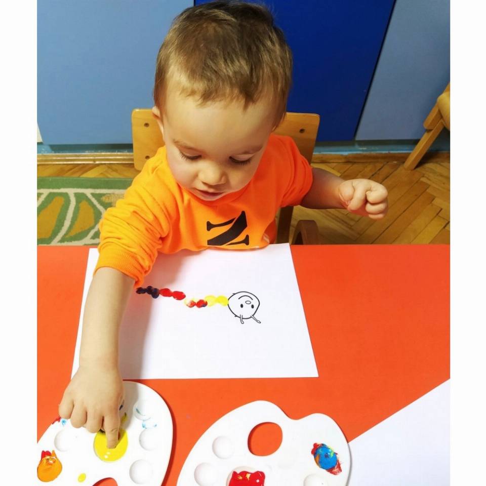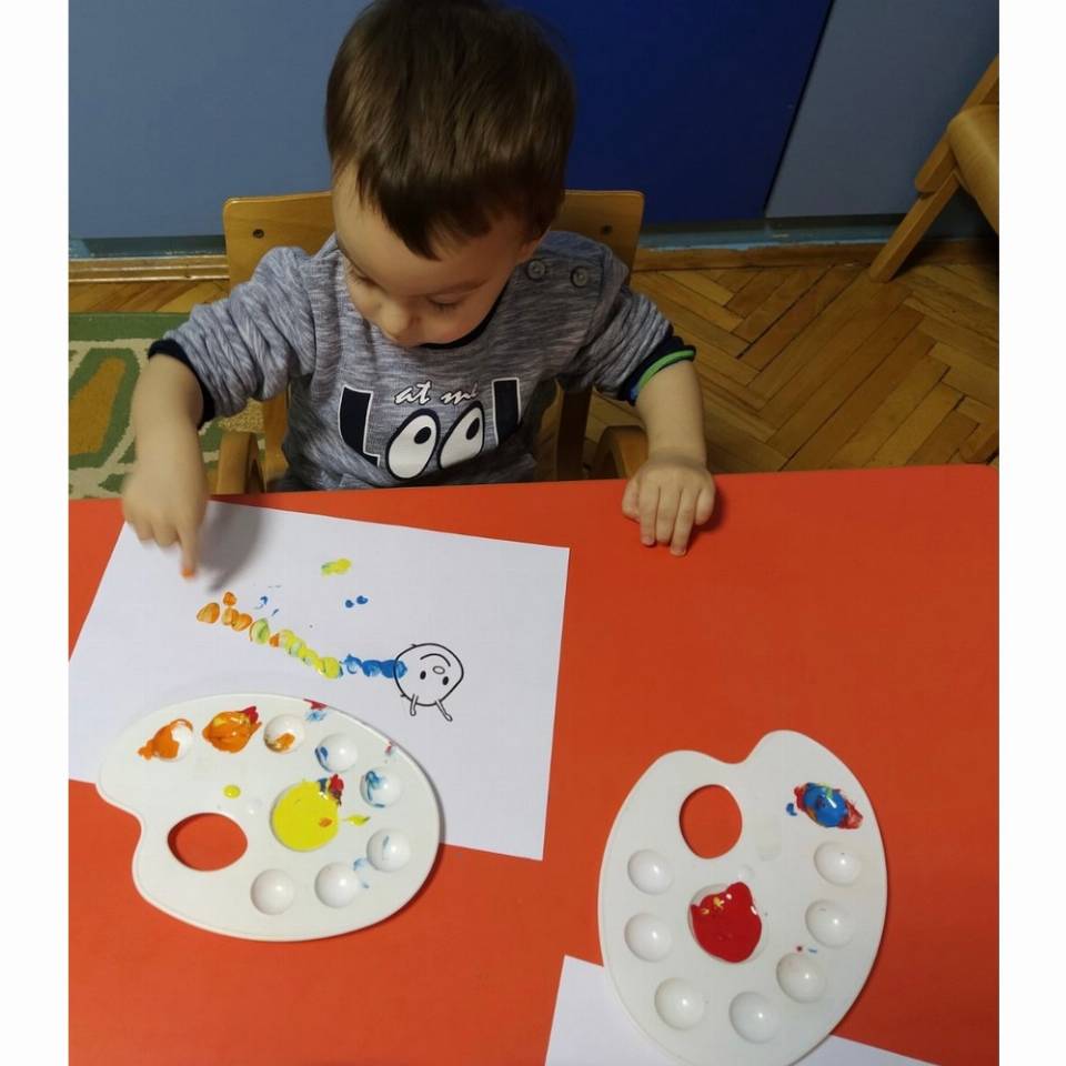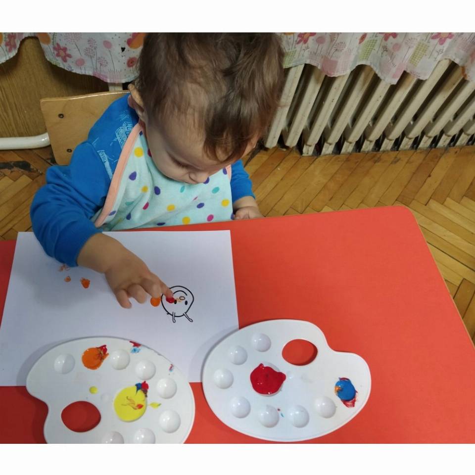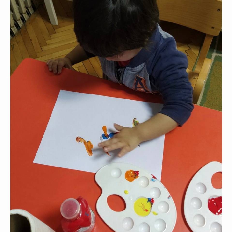 Да се охрабри детето за правилна манипулација на дланките и прстите при печатење со прсти.