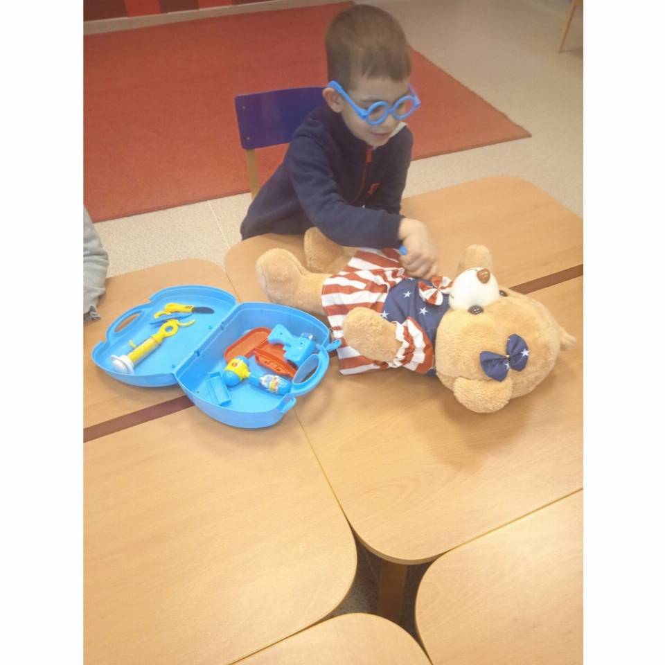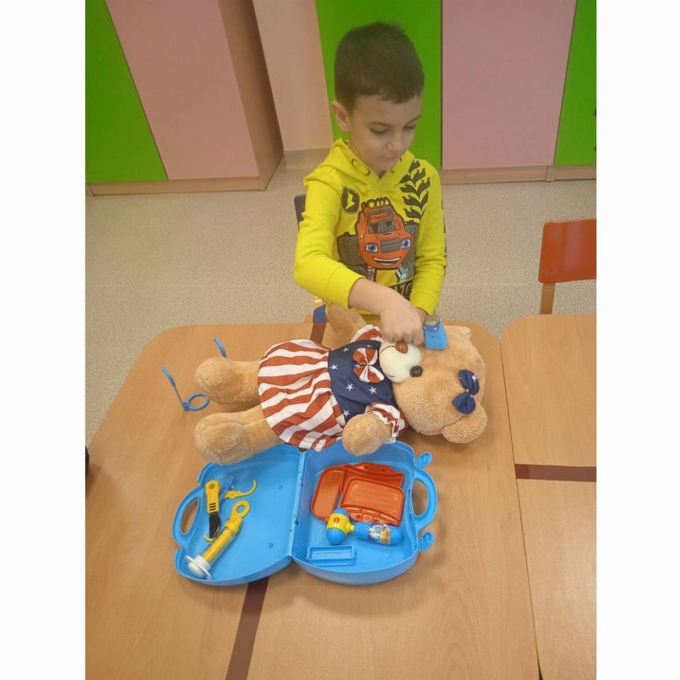 Цел на активноста: Да се развива интерес и потреба за решавање на проблемски ситуации и манифестирање на емоционална комуникација со промена на улоги дете-доктор.